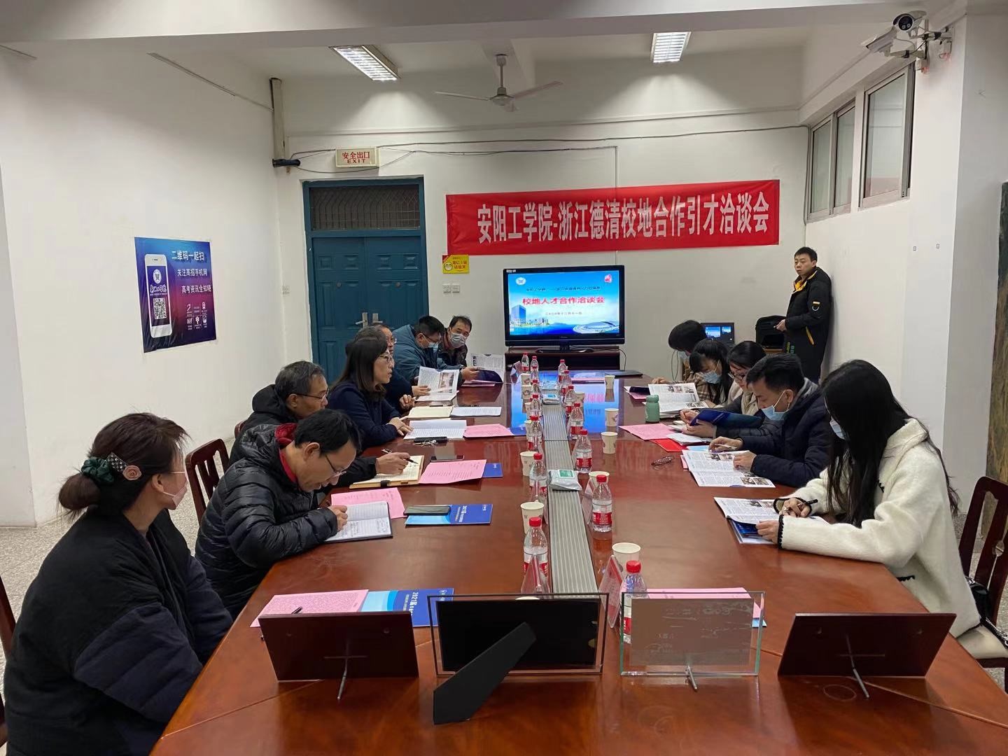 会上,牛东亚对孙冰一行的到来表示热烈欢迎,并简要介绍了我校专业建设、毕业生就业创业等情况。孙冰介绍了德清县的信息经济、健康产业、高端装备制造、休闲旅游四大产业体系和通用航空产业园、智能生态城等重点科研平台,并详细解读了德清县大学生就业创业政策。双方针对就业创业、人才引进等问题展开了广泛交流,并达成了一系列合作共识。