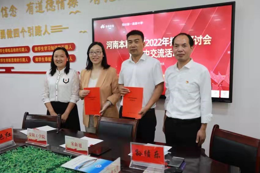 活动中,我校与登封一中签订了共建优质生源基地协议并授予该校“安阳工学院优质生源基地”牌匾。与副校长、年级主任、班主任进行了座谈,登封一中副校长宋新旭介绍了登封一中的基本情况、近年来取得的成绩,并表达了与高校开展交流,使高中学子获得专业特色介绍、报考政策解读、生涯规划指导等方面的需求。