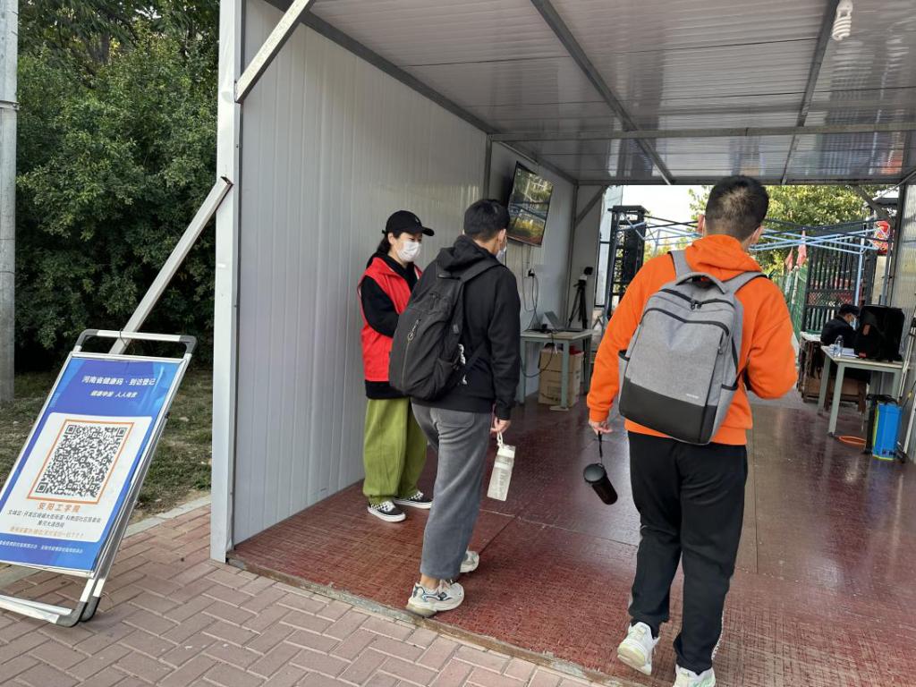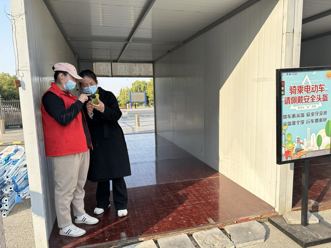 工作人员在学校小东门值班值守