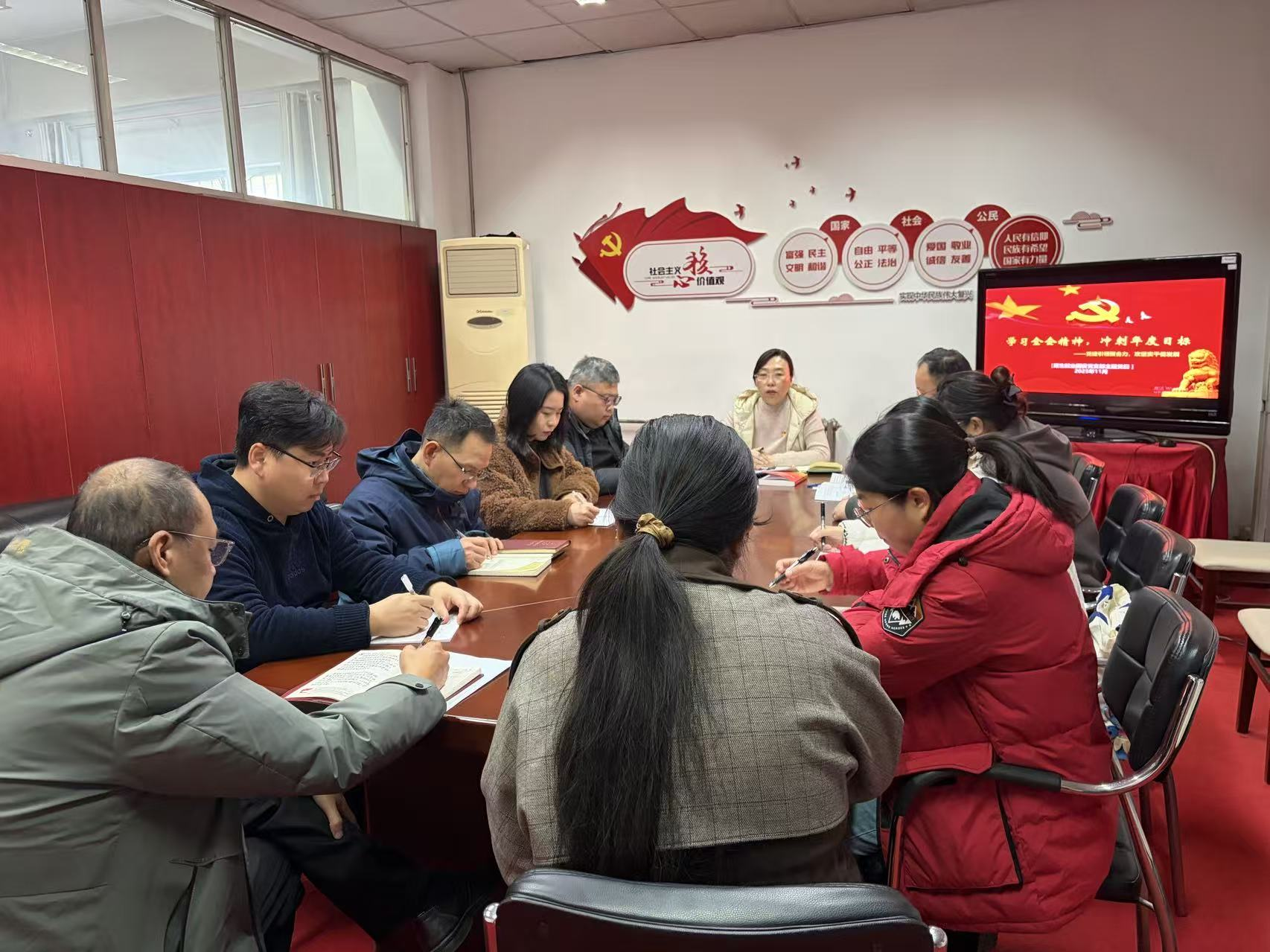 为深学细悟党的二十届四中全会精神及“十五五”规划建议核心要义,以党建引领业务攻坚,11月21日下午,招生就业国资党支部在B02号楼206党员活动室开展“学习全会精神 冲刺年度目标”主题党日活动,支部全体党员及入党积极分子参加。