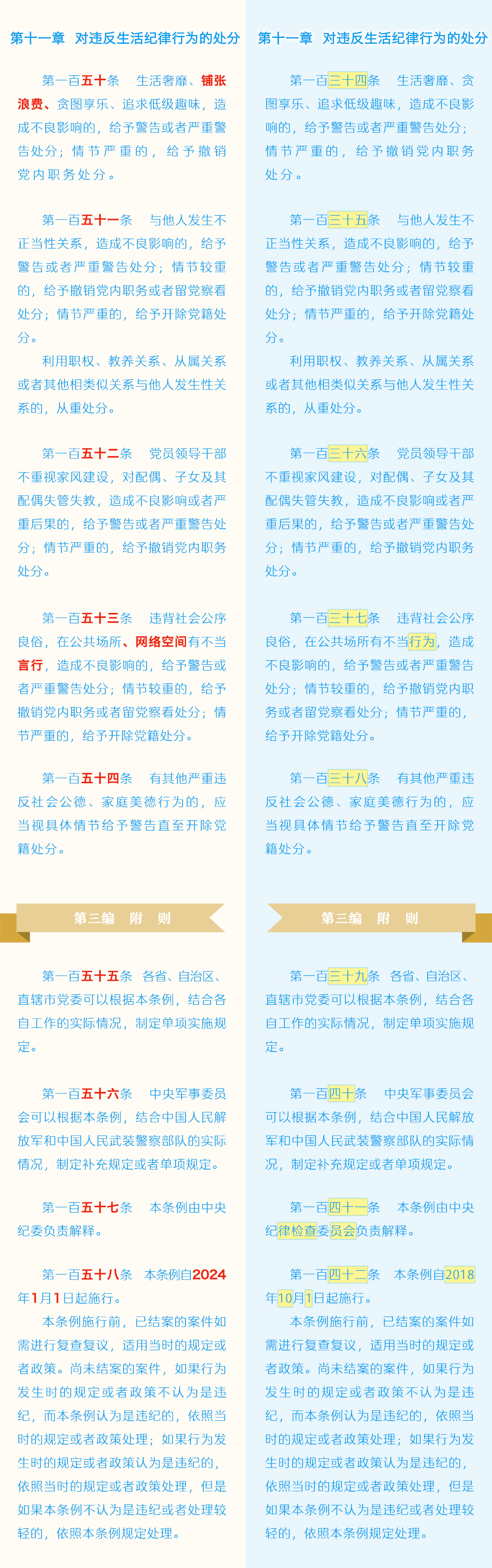 《中国共产党纪律处分条例》修订条文对照表